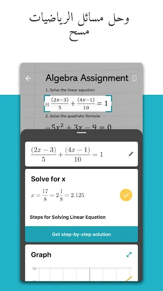 يعرض حل المشكلة خطوة بخطوة مع المخططات التفاعلية